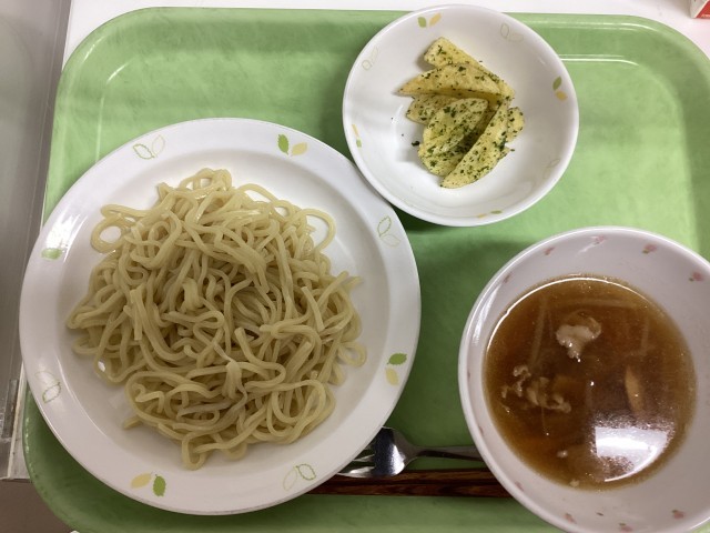 1学期最後の給食になりました。子どもたちが大好きな麺料理で麺ゆでやじゃがいもを揚げています。暑さ対策をしながら作業をする調理員の皆さんのおかげでおいしい給食が提供できました。