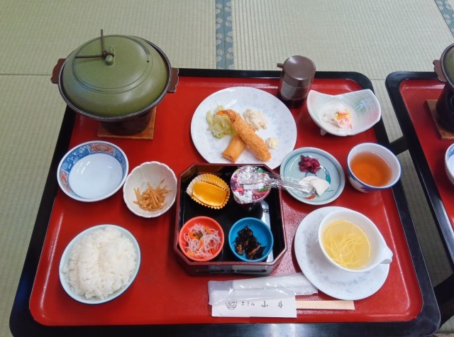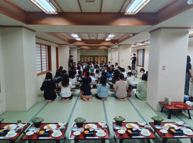 夕食です。様々なおかずが目の前にあり、みな大喜びです。残さずいただきます。