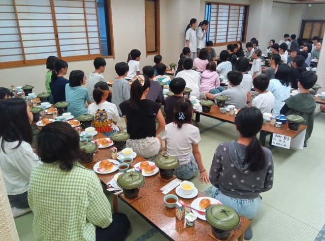 姿勢を整えて「いただきます:」をしています。素晴らしい姿です。