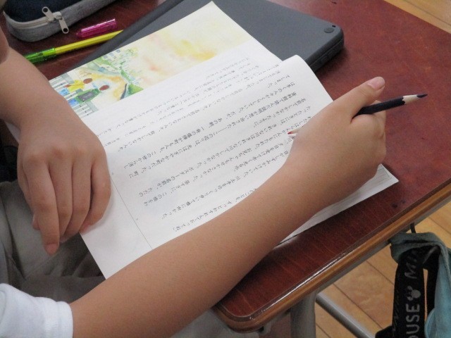 「たずねびと」という広島の原爆についての物語文を学習しています。5年生にもなると文章が長くなります。じっくりと読み取ることができるように、個人で考える時間を多めに取っています。