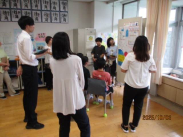 先日お聞きした、様々な仕事について発表しました。多くの仕事に共通していた必要な力は「コミュニケーション能力」でした。今の自分には身に付いているのか、身に付けるためには何をすれば良いのか、個々がじっくりと考える時間となりました。