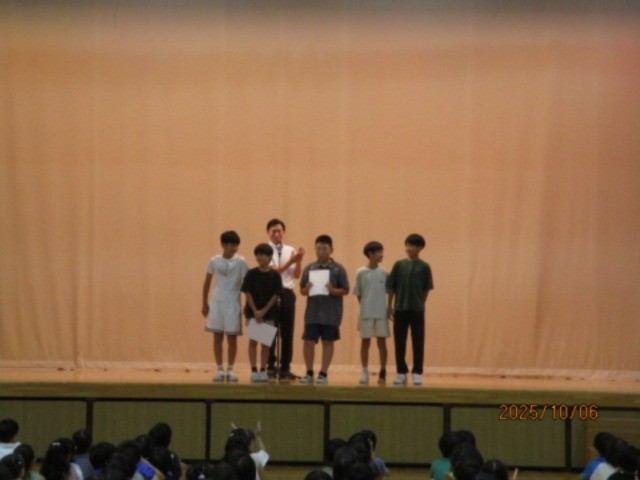 地域の野球で活躍した子たちを表彰しました。学校外の活躍に関しても、できるだけ表彰し、子供たちに自信を付けさせたいと考えています。遠慮なく御相談ください。