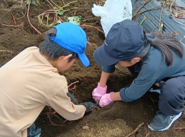 秋山農園にさつまいも掘りに来ました。どの子も袋一杯にさつまいもが収穫できました。御自宅で召し上がってください。