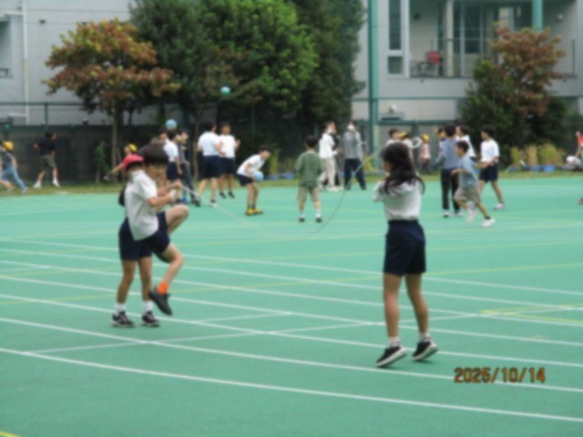 6年生が長縄に挑戦しているのを見て、長縄に挑戦する3年生が出てきました。長縄は、協調性や集中力などの普段から大切にしたい力が育ちます。6年生の姿が学校全体に広まっていて、とてもすてきです。