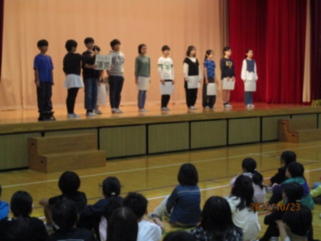 後期委員会の委員長とメンバーを紹介しました。運営委員長が「自然と笑顔になるようにしていきましょう」と全校に呼びかけてくれました。5・6年生の力でより良い駒小になることを期待しています。
