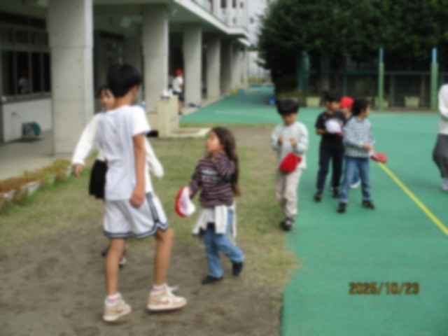 なかよし班で遊びました。校庭をのぞいてみると、上級生が下級生にボールを譲っていました。年長者が年少者に優しく接し、年少者はそれに感謝の気持ちをもつ、異学年交流のよさが感じられました。