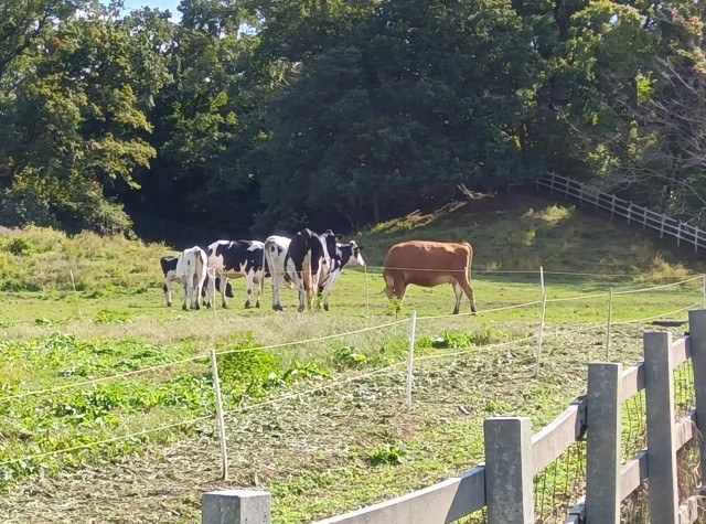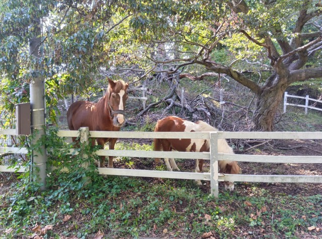 子どもたちはグループ行動中です。園内では動物とも出会えます。