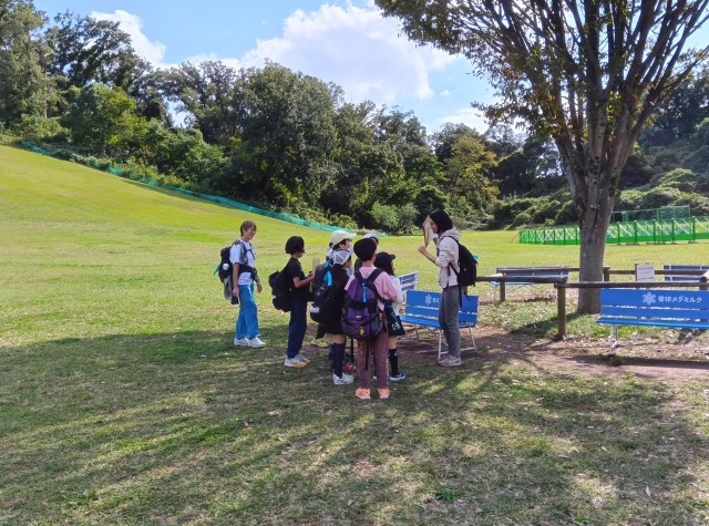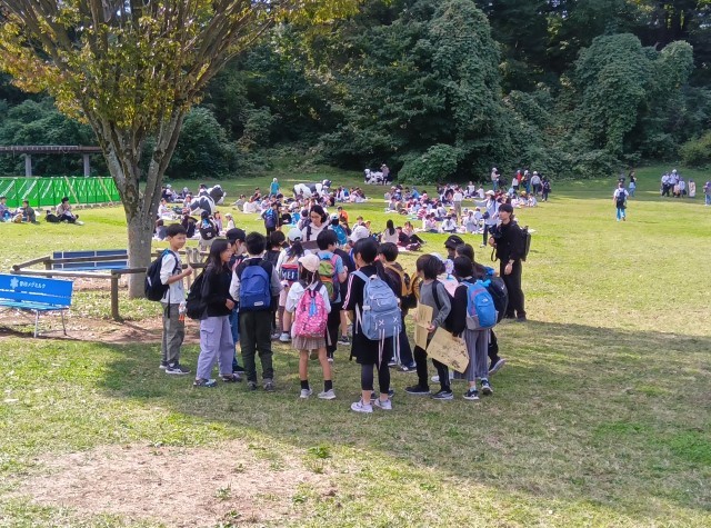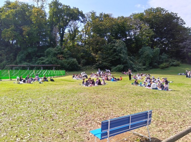 ぞくぞくとゴールし、弁当タイムです。青空の下、笑顔でいっぱいです。
