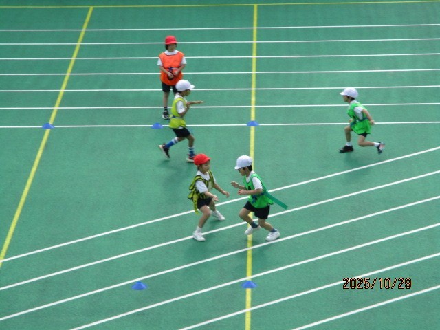 ボール運び鬼に取り組んでいます。全員が、攻める・守るのどちらかの役割を担うので、目一杯体を動かすことができます。寒さに負けない体づくりにつながります。