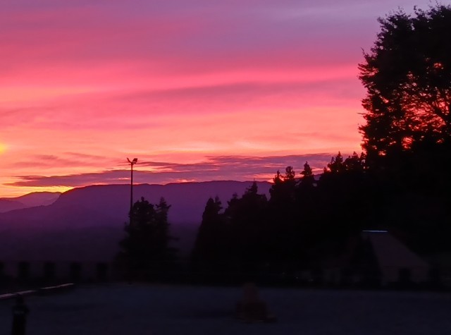 すてきな夕焼けが見られました。この後は、間伐材を使った箸作り体験があります。