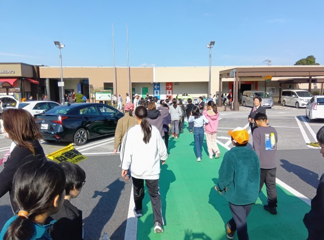 上里サービスエリアでトイレ休憩です。どのバスもDVDを見ています。