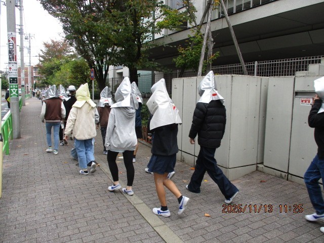 今日は、駒沢中学校まで避難しました。道中はとても静かで列を乱すことがなく避難できて、大変感心しました。天災は忘れた頃にやってきます。月に1回の避難訓練に真剣に取り組んでいます。