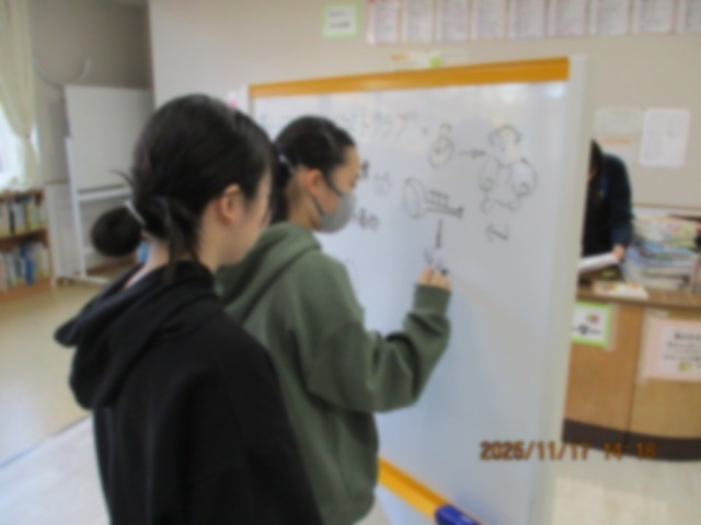 クラブ活動です。漫画・イラストクラブの児童が絵しりとりをやっていたので入れてもらいました。私の描い絵でも何とかつながりました。