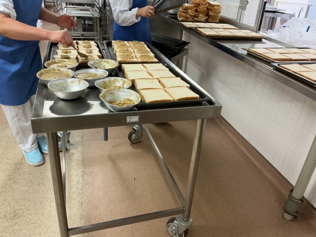 セサミトーストにはすりごまをペーストに加えています。ごまペーストを均等に塗りオーブンで焼いていきます。