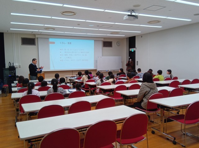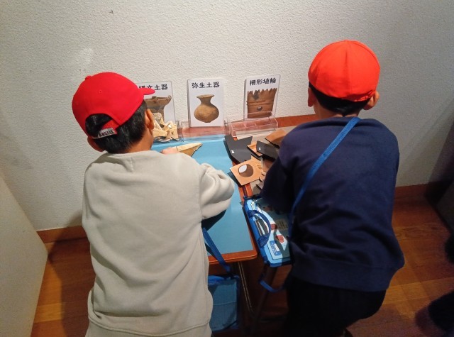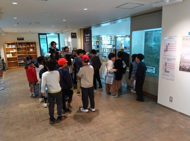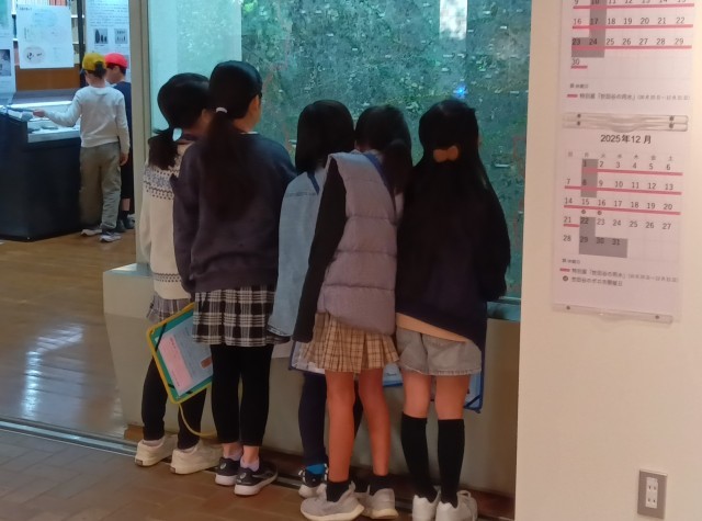 クラスごとに、説明を聞いたり自由に見学したりしています。