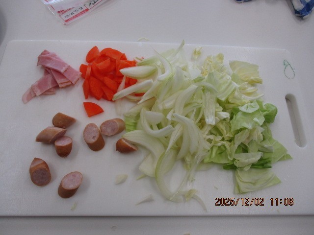 使う材料は同じですが、作るものはグループごとに違います。「炒める・ゆでる・揚げる」など、様々な調理方法に挑戦しています。