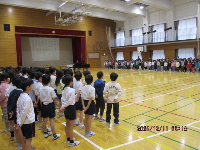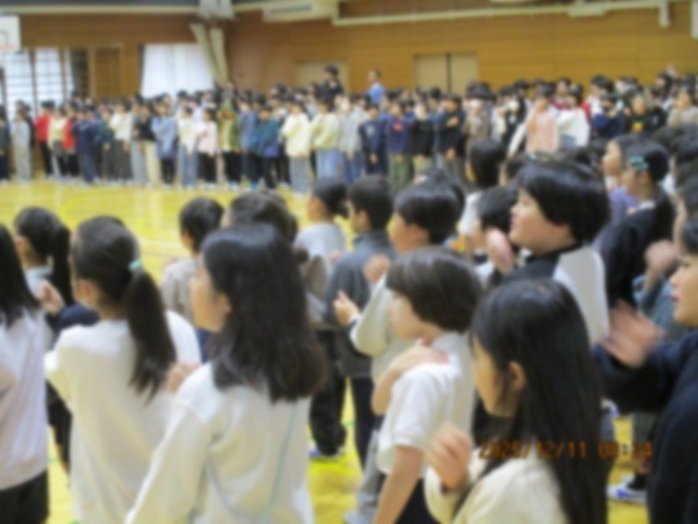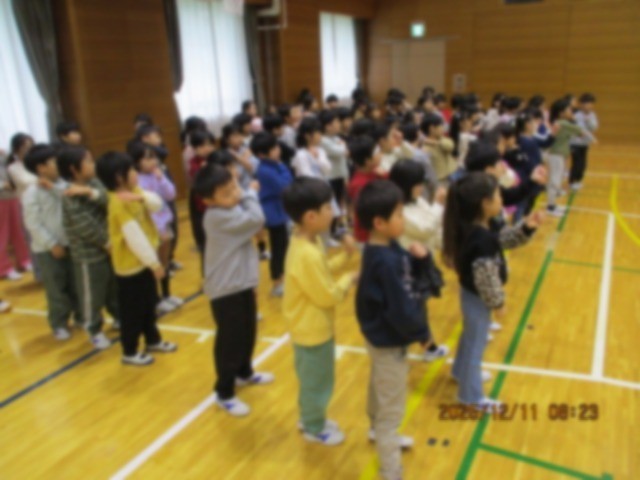 今朝は「ゆき」を歌いました。歌のリズムに合わせて自分の肩を叩いたり手拍子したり、楽しく歌いました。退場の際に伴奏が流れると、多くの子が肩をたたきながら歩く姿がとてもすてきでした。
