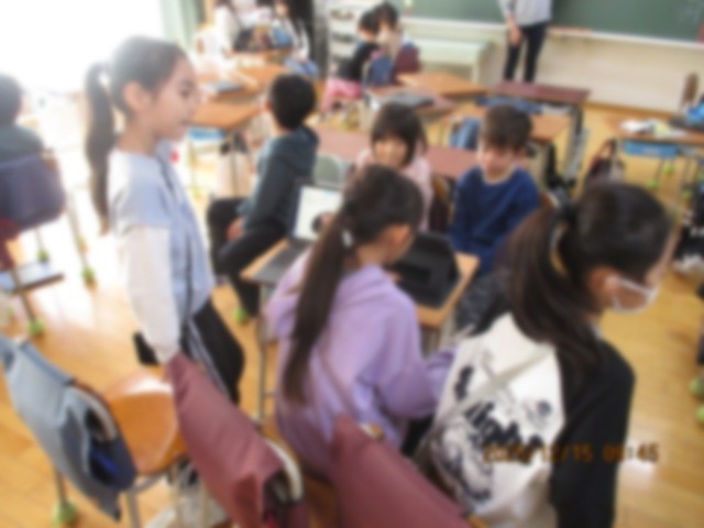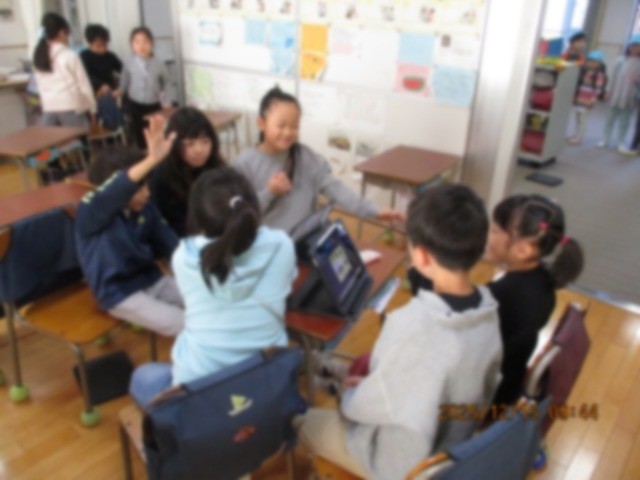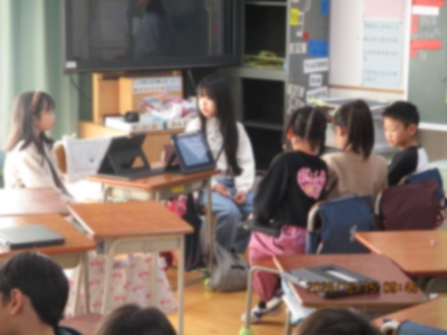 町探検で学んだことをグループごとにまとめ、発表しています。最後にクイズを出すなど、それぞれの工夫が見られた発表でした。