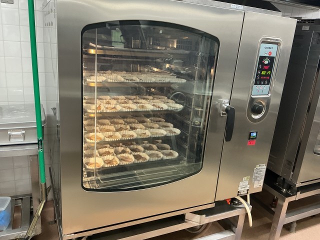 今日のリクエストのメニューは鶏肉の香草焼きです。にんにく・しょうが・バジルで臭み取りと風味つけをしました。カップに一人分を入れてオーブンで焼いています。ごはんには有機米を使用しました。