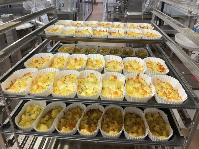スライスしたじゃがいもに味つけして、カップ入れ後にチーズを乗せて焼きました。ホクホクとした食感のじゃがいもと溶けたチーズがよく合う1品です。