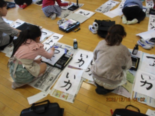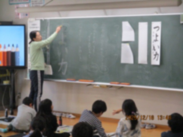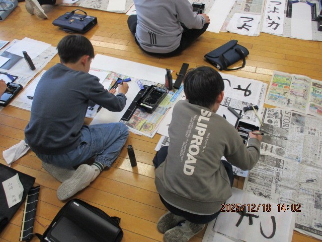 書き初めの練習が始まっています。普段とは違う長い半紙に書くので、字のバランスや大きさが難しくなります。冬休みの課題にも出ますので、御協力をよろしくお願いします。