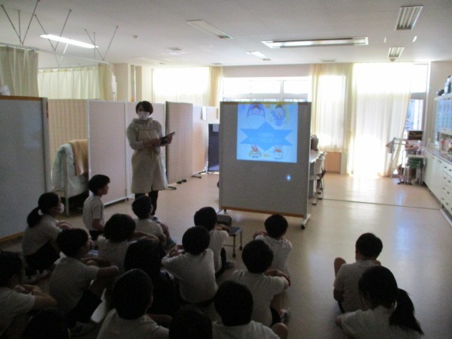 発育測定に合わせて、養護教諭が保健指導を行っています。今回は生活習慣についてでした。身体的にも精神的にも健康を保つためには、生活習慣を整えることがとても大切です。