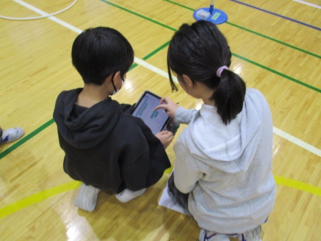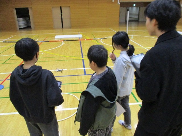 5年生がドローン体験をしました。自分でドローンを実際に操作する体験とあらかじめプログラミングして飛ばす体験の2種類に取り組みました。思ったとおりにプログラミングする難しさを体感できました。