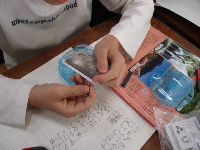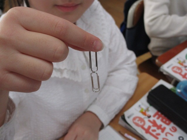 「鉄は磁石になるのでしょうか」この問いを解決するために実験しています。クリップを磁石にこすり付けて、砂鉄や方位磁針に近付けてみました。はたして磁石になったのでしょうか。
