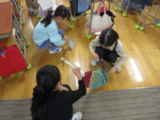作品作りは一生懸命に取り組みますが片付けになると…、という場面をよく見ます。3年生にはそんなことはなく、床に落ちた紙くずを協力してきれいに掃除していました。立派です。