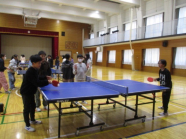 学年でレクリエーションを楽しんでいます。ティーボールと卓球をやっていましたが、和気あいあいとしていて、とても良い雰囲気でした。
