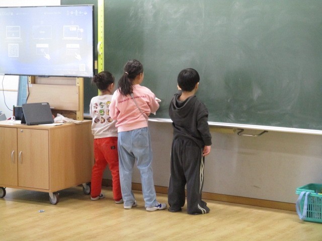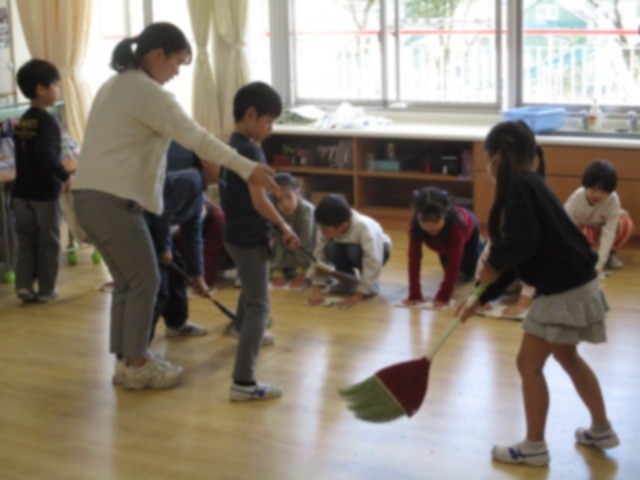 本校の校舎はとてもきれいです。用務主事の日々の管理のおかげもありますが、子どもたちも掃除を頑張っています。細かいほこりをちりとりで集めています。