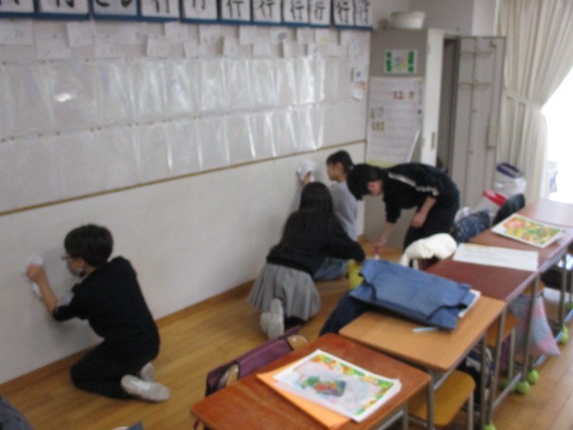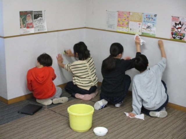 場所によって汚れの種類が異なり、掃除方法も異なることを学びました。学んだことを実践するために、全員で教室を掃除しています。