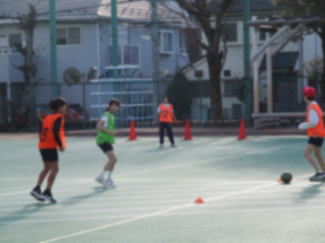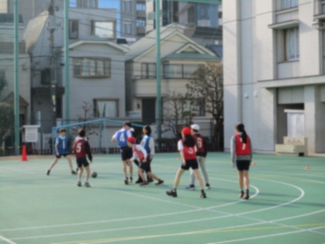 サッカーをしています。どの子もボールから目を離さずに、積極的にゲームに参加していて素晴らしいです。時折聞こえる担任の激励に答えようとする子どもたちはとてもすてきです。