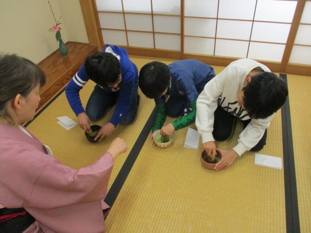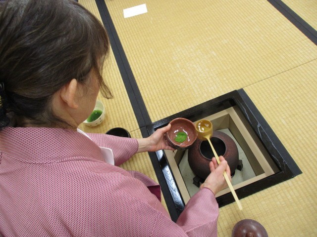 自分がたてた抹茶とお菓子をいただきました。泡をたたせるためには、手首のスナップを使い、上下に茶筅を動かすようです。私も体験させていただきました。御指導ありがとうございました。
