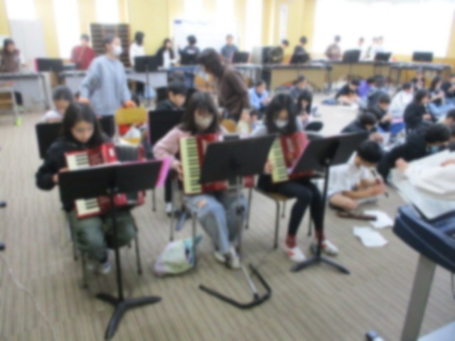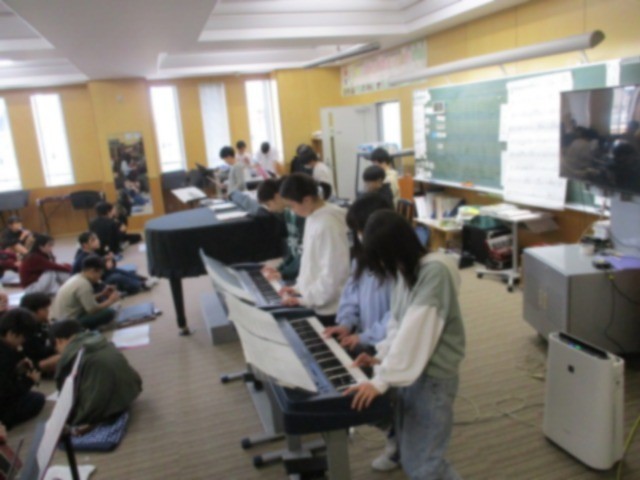 学年合同での音楽でした。人数が多いと合奏も迫力があります。担任もサポートしながら、完成度を高めています。多くの人に聞いてもらえる機会があると良いです。