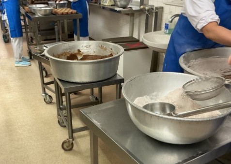 鶏卵・バター・牛乳を加えずに調理したココアマフィンの生地をつくっています。牛乳の代わりに豆乳、砂糖の代わりに純正メープルシロップを使用しています