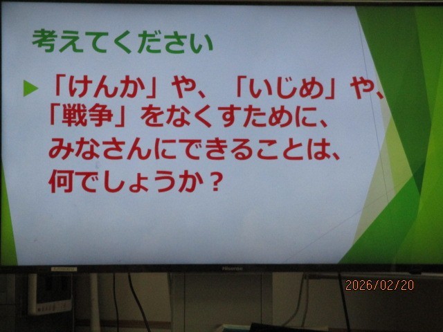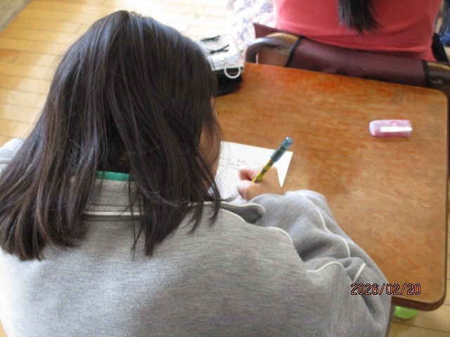 授業の最後に、自分の考えをまとめています。大きなテーマではありますが、一人一人が自分にできることは何かについて真剣に考えています。