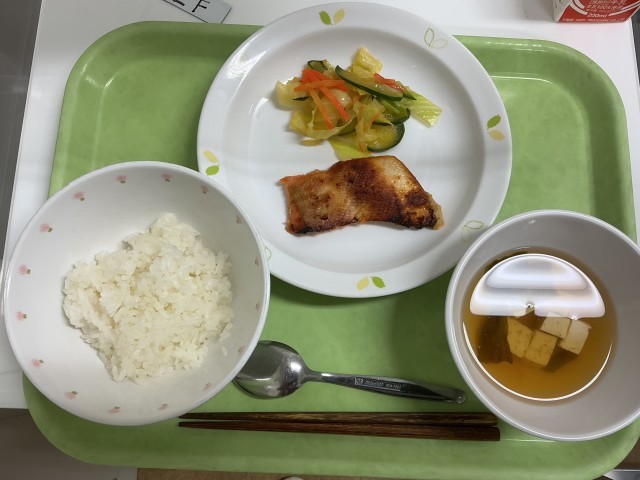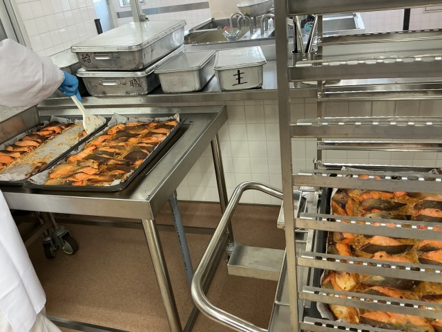 今日は月に1度の有機米使用の給食です。有機栽培でつくられた米を炊き、しっかりと食べられる献立にしました。脂の乗った鮭をねぎみそ焼きは白ごはんによく合います。