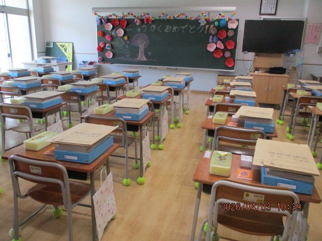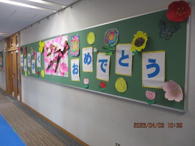 1年生教室と廊下の装飾です。新6年生が仕上げてくれました。子どもたちの笑顔や元気さに触れられて、私たち教員もとてもうれしかったです。来週月曜日は始業式です。良いスタートが切れそうです。