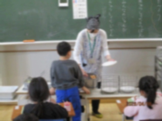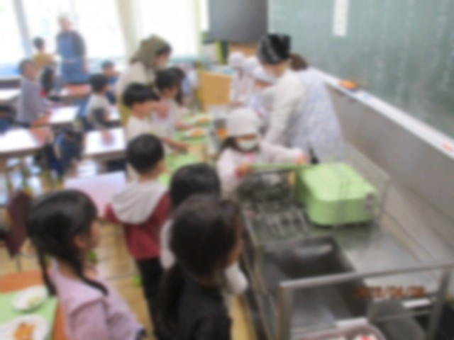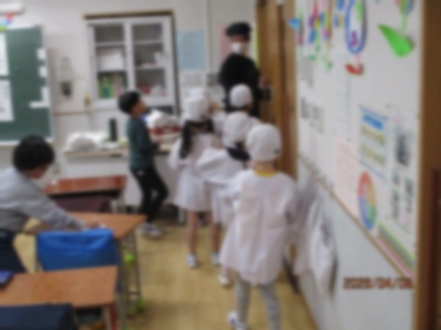 昨日の給食の様子です。初めての給食当番や喫食、驚きや喜びなどがたくさんあったことと思います。早速お代わりをしている子もいました。たくさん食べて、丈夫な体をつくってほしいです。