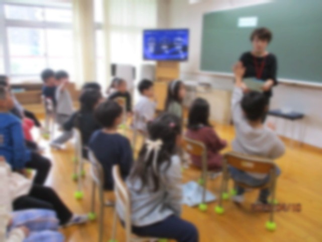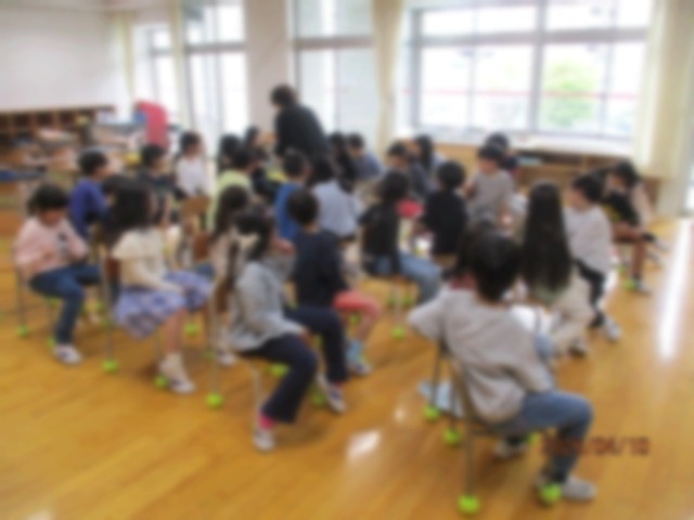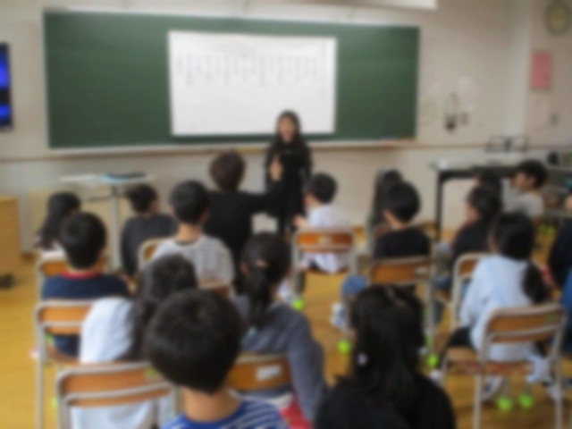 校歌の歌っていました。聞きなれない言葉が使われているので、歌詞の意味を説明しています。口が大きく開いている子が皆の前で手本を見せてくれました。