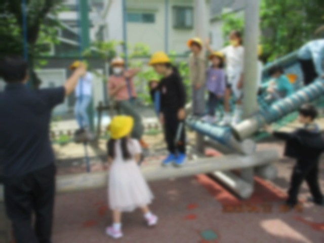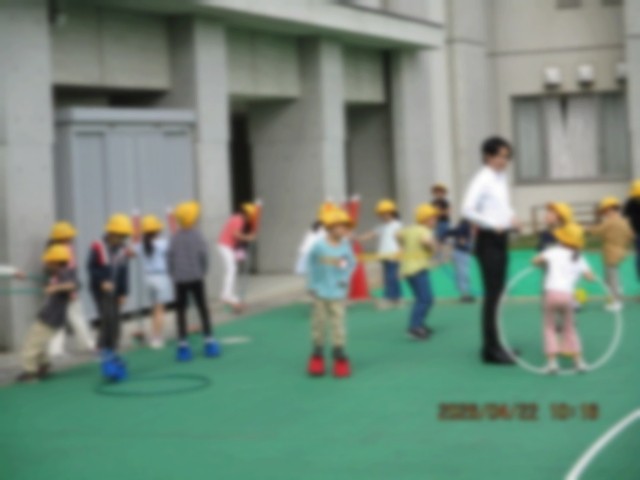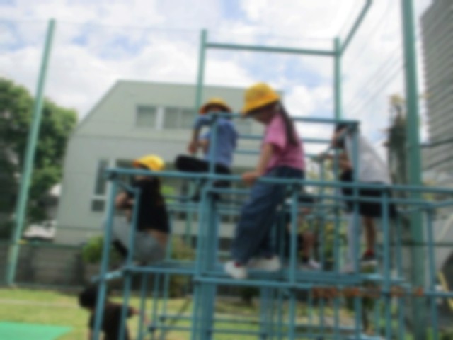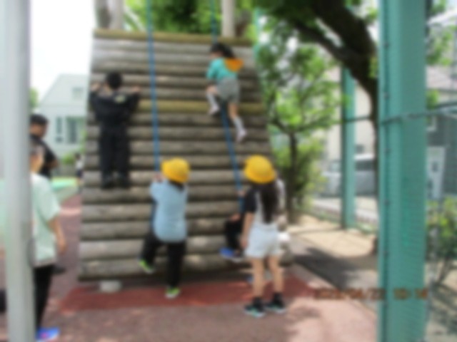 1年生も休み時間に校庭で遊べるようになりました。アスレチックやジャングルジム、竹馬やフラフープなど、思い思いの遊びをしています。
