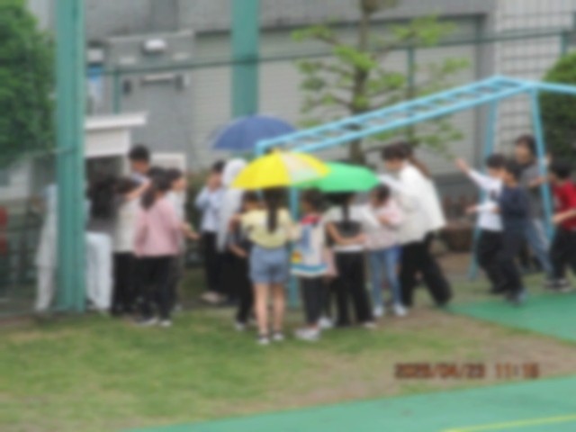 百葉箱の中を見に行きました。最近では、学校以外で見る機会はなくなってきているのではないでしょうか。今日は少し涼しいようで、「17度です」という声が聞こえました。
