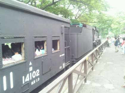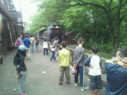 これからSLに乗ります。汽笛の音の大きさにビックリしました。