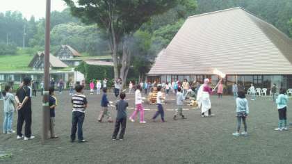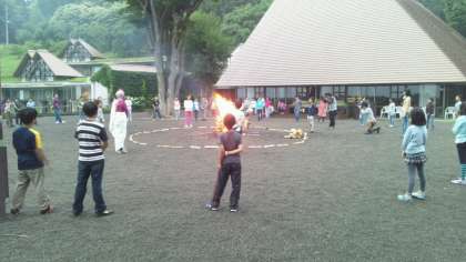 カレーもおいしくつくれました。そしていよいよ楽しみにしていたキャンプファイヤです。みんなで楽しく歌って〓踊ります。