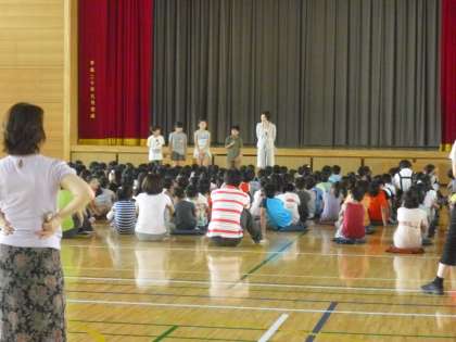 3日間の生活で、5年生は、どのグループも協力して仕事をしていました。また、宿舎の方やナイトハイクなどの説明をしてくださる方のお話の聞き方がとても上手だなあと思いました。立派な態度で生活をし、頼もしい5年生でした。移動教室で学んだことをこれからの生活に生かしてほしいと願っています。 他の学年の人たちも、夏休みまでの2週間、暑さに負けずに、クラスの友だちと仲良く、元気に生活してください。これでお話を終わります。