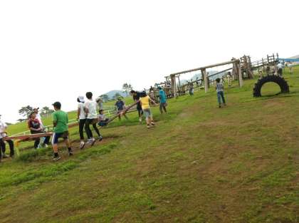 遊具やアスレチックで楽しくそうに遊んでいます。