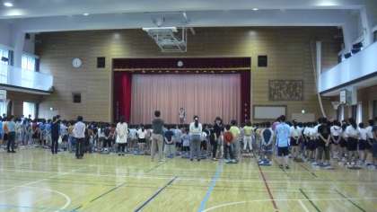 先週、6年生と5年生が水泳記録会で、自分の記録に挑戦し、最後まで粘り強く泳ぎ切りました。他の人が泳いでいる時も「頑張れ」と応援している声が響き、とてもすばらしい記録会でした。