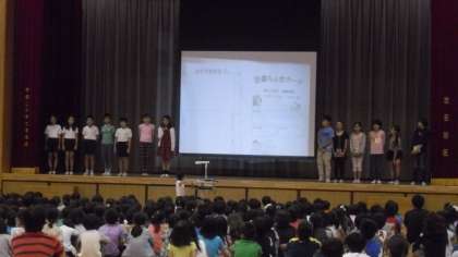 読書週間が行われました。図書委員会の子どもたちが、集会でおすすめの本を紹介してくれました。また、各クラスに読み聞かせをしてくれました。