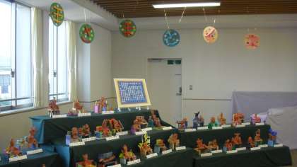 3年生「ずっこびと絵の具の国にあらわれた」「キラキラの絵」「王様とイス」「すけ    てるお絵かき」